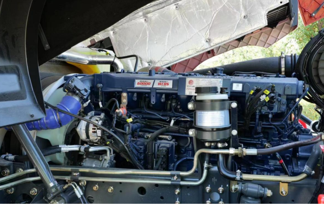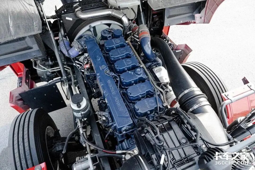 这款徐工智卡W550配备了潍柴蓝擎二代13升直列六缸发动机,最大550马力,在950-1400转的转速区间时,可以爆发2550牛米的最大扭矩;据了解,这款发动机ECU中油门MAP数据偏向于动力性调校,小油门开度对应大扭矩输出,整车起步有劲,加速也更加迅捷,更加适合干线高效物流运输场景。