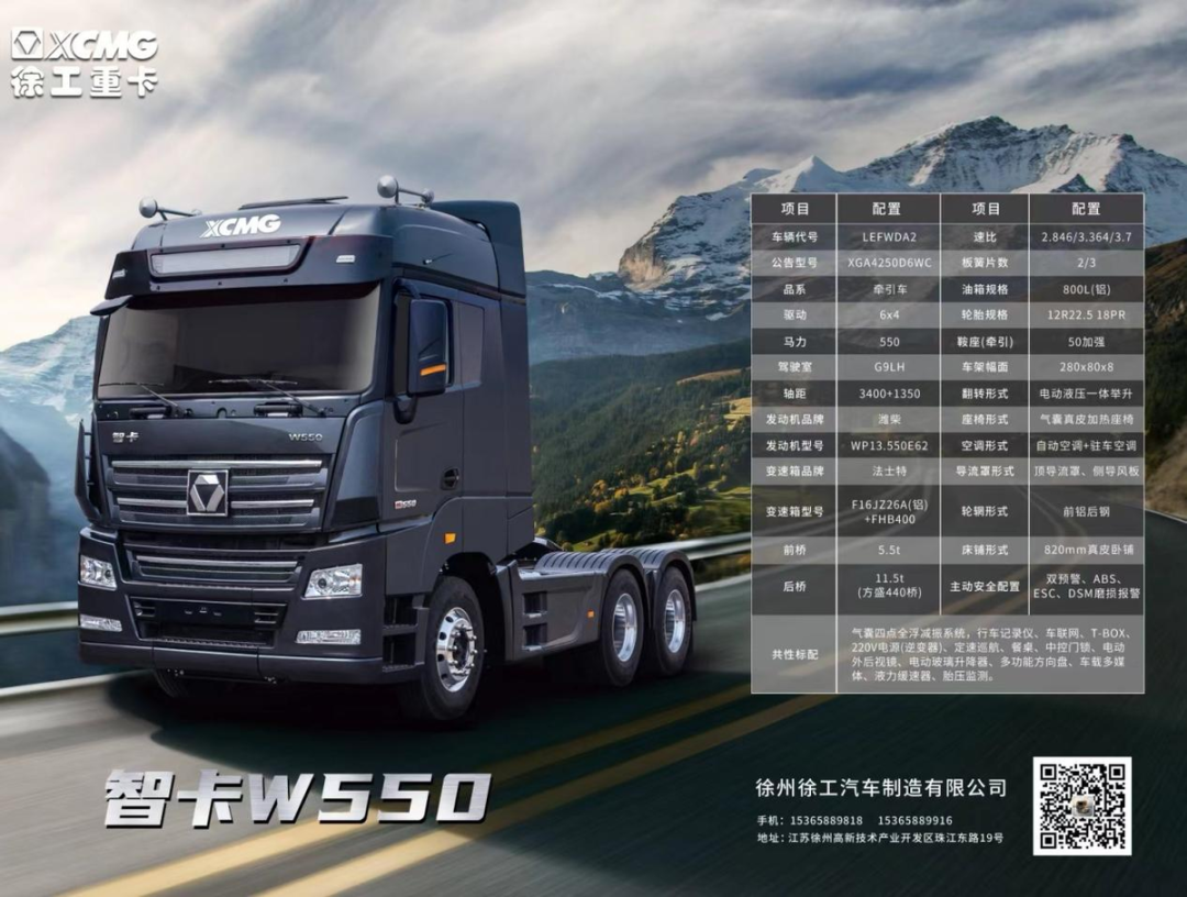 而且张师傅了解到,徐工重卡在2022年11月18日首发上市了一款全新的旗舰级产品:徐工智卡W550,不仅搭载了潍柴蓝擎第二代13升550匹马力发动机、法士特智行16档AMT变速箱;而且属于高端旗舰重卡的配置应有尽有。