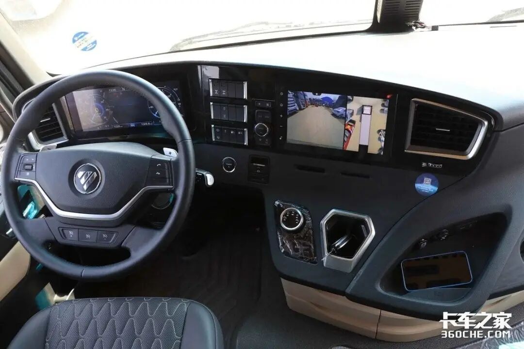 功能性和舒适性配置方面,我们实拍的这款欧曼银河装配有支持多项调节的格拉默座椅(还带有按摩功能)、后视镜电动调节电加热、皮质包裹多功能方向盘、全液晶仪表盘、集成有360环视显示的可语音交互多媒体大屏、无线充电桌斗等等等等,可以说是能够满足用车卡友在车上食和住的一切需求!