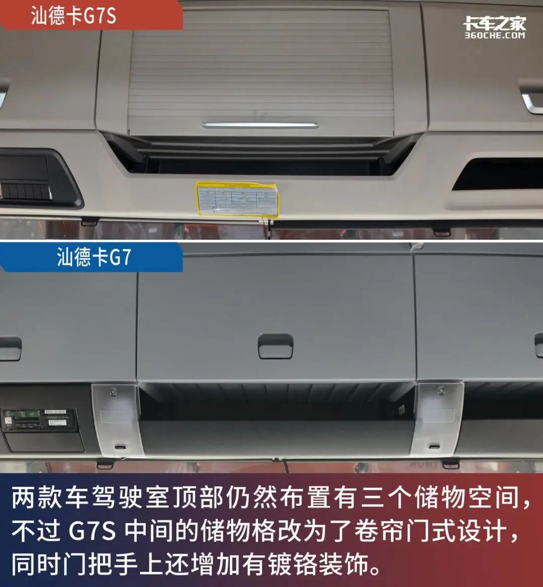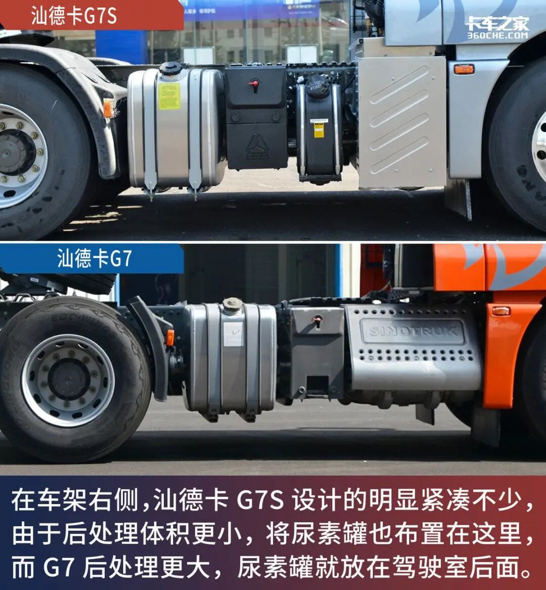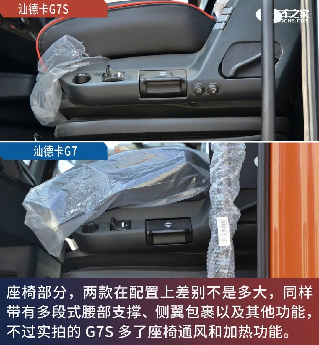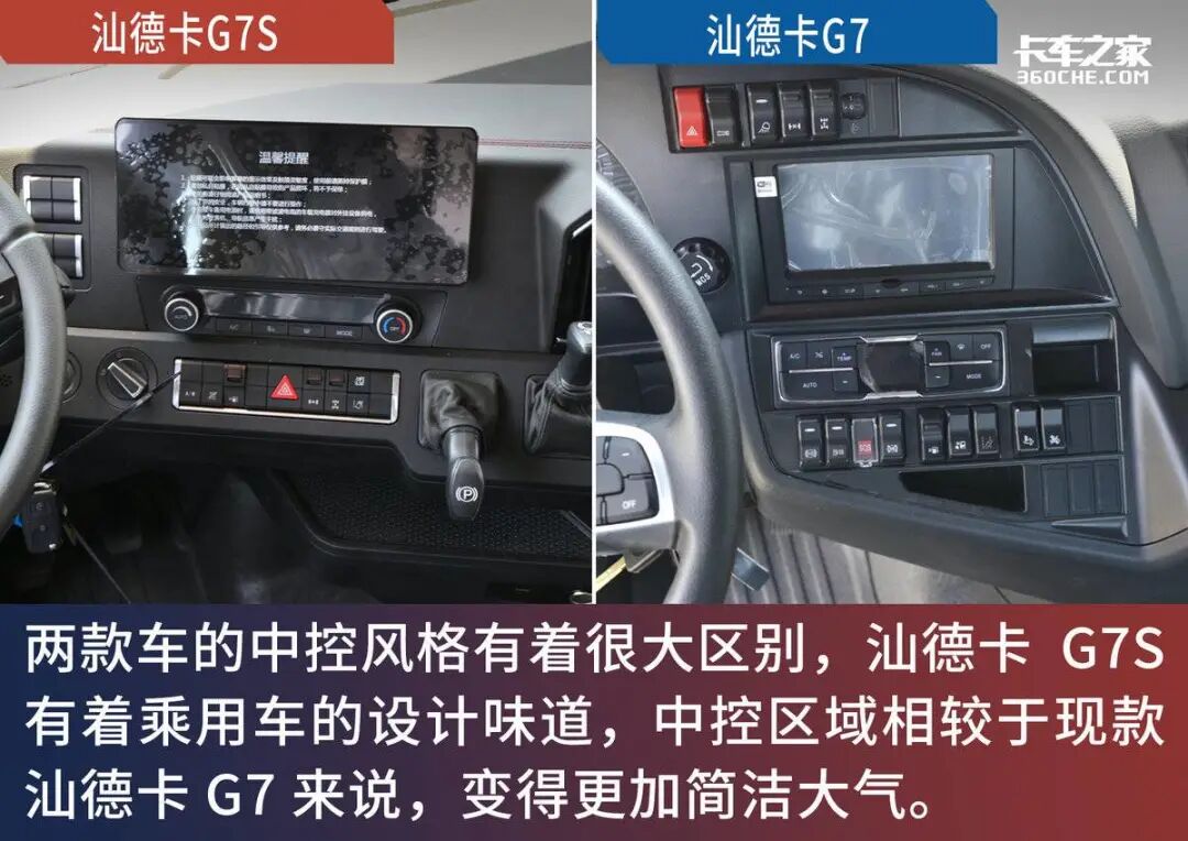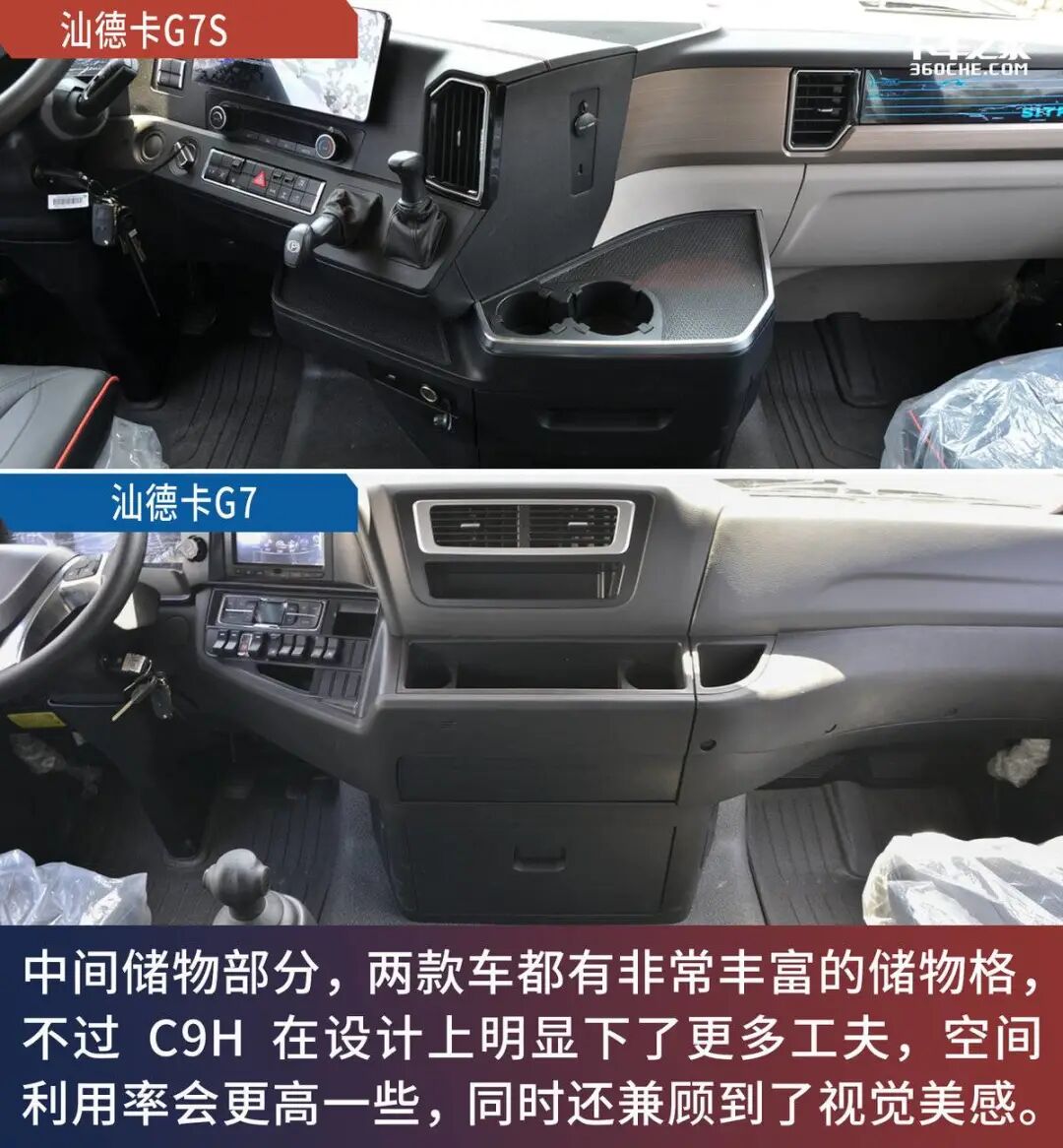 通过对比可以发现,这两款车最主要的变化还是集中在内饰和底盘部分,汕德卡G7S有着更加丰富的科技化配置和更具档次感的设计,同时610匹大马力能够让它非常轻松的胜任各种高时效物流场景,对于追求高舒适和高时效的用户来说,汕德卡G7S会更加适合。
