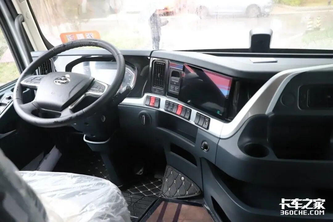 先看驾驶区,主驾驶的视野非常开阔,这是得益于它的小倾角A柱设计,这让司机在进行转弯的时候比较好判断。