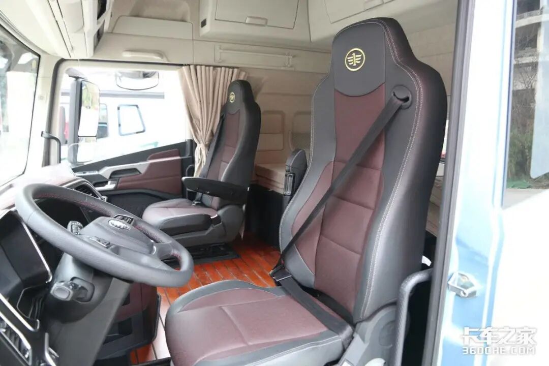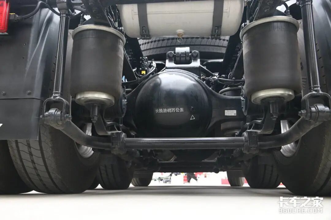 在底盘方面,实拍车型采用了进口的ECAS 8气囊空气悬架设计,能够带来更加平稳的高速行驶感受,同时在甩挂运输的过程中增强运输效率。后桥则是采用解放研制的156型号后桥,后桥速比为2.85,整车的总速比为2.197。