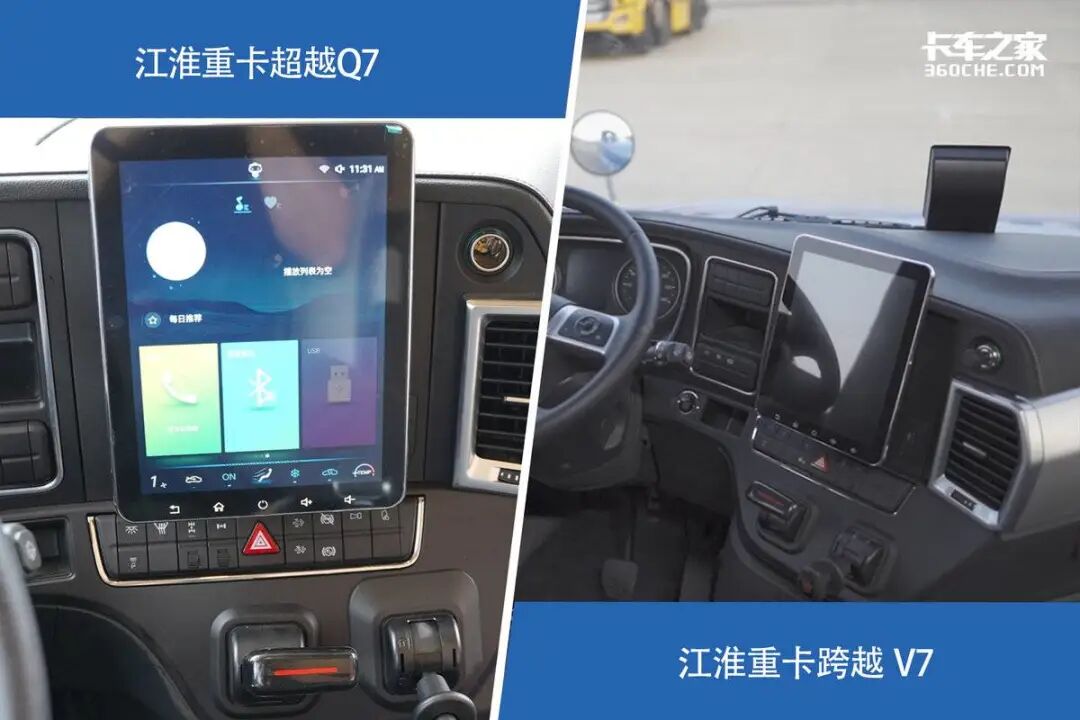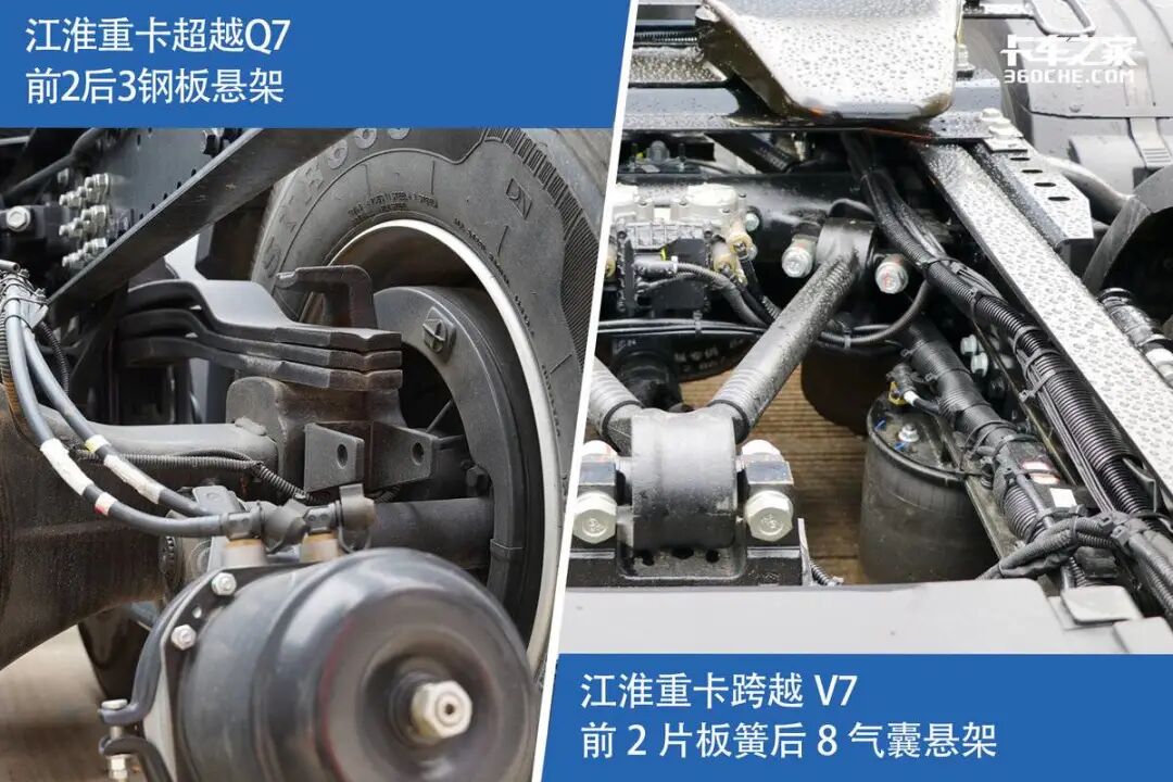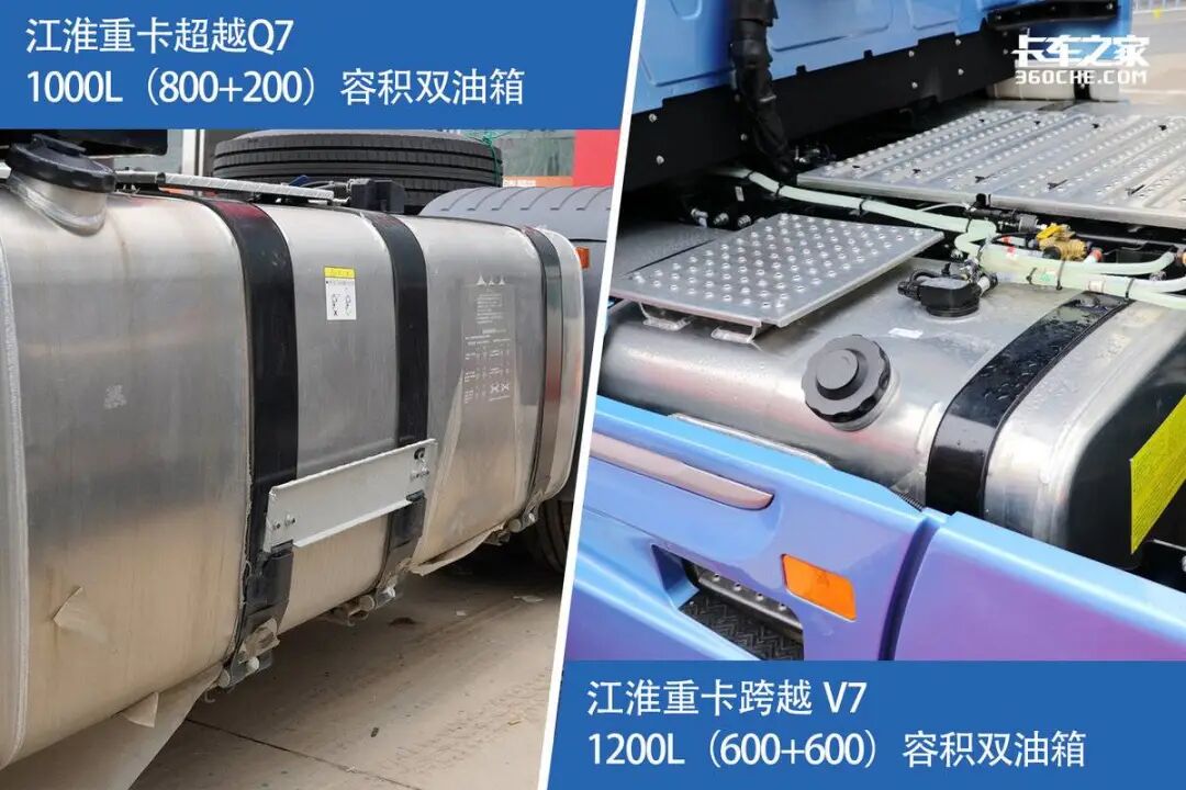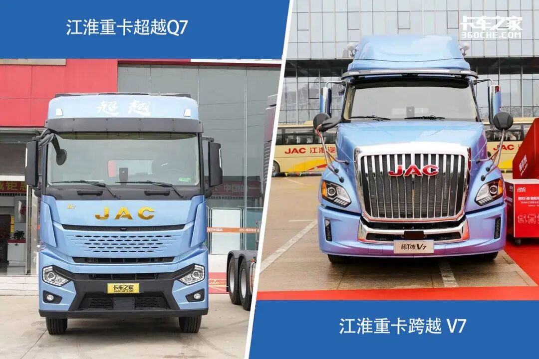 那本期文章就分别找出一款长头牵引车、一款平头牵引车进行配置对比,它们都是来自江淮重卡,长头牵引车是江淮重卡跨越V7,平头牵引车是江淮重卡超越Q7。具体两车配置对比如何,咱往下看!