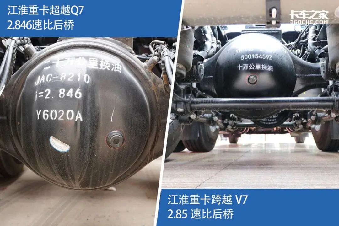 还有,超越Q7采用前2后3钢板悬架,没有配置空气悬架,不过可以选配。跨越V7是匹配前悬架2片簧,后悬架8气囊设计的悬架形式。另外,超越Q7的发动机支持10万公里长换油、变速箱支持15万公里长换油、后桥支持20万公里长换油、前桥轮端(康迈)支持50万公里长换油。跨越V7的发动机、变速箱、传动轴、中后桥、柴滤等总成大件是可实现10万公里及以上长保养里程。