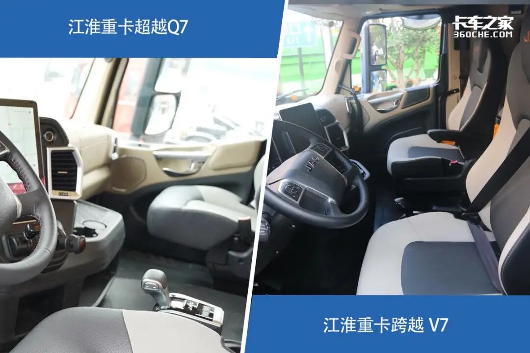 在配置方面,超越Q7和跨越V7的主副驾座椅均具备有气囊减震功能,还支持通风加热以及两级腰部支撑调节,就这舒适性能,即便长途运输足够劳累,也能很大程度上减轻卡友们的疲劳程度。