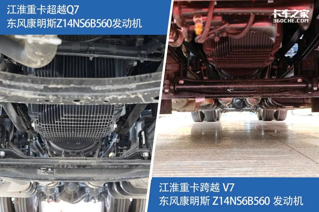 在动力链匹配上,超越Q7和跨越V7都是搭载东风康明斯Z14NS6B560发动机,13.48L排量,符合国六排放标准,该发动机最大输出功率为418kW(560马力),当发动机转速达到900-1400rpm这个区间时可爆发2650N·m的峰值扭矩。另外,这款发动机采用高效SCR后处理技术路线,可以降低后处理再生频次。还有康明斯扭矩控制系统可以降低动力输出的浪费,达到节油的效果。