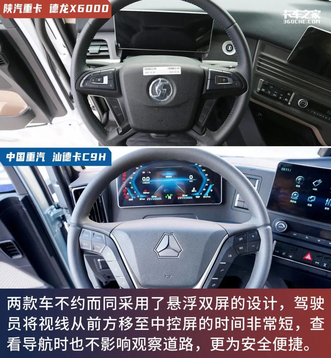 在动力链的环节中,双方均采用了潍柴动力的发动机及自身体系中的产品,X6000采用潍柴发动机+法士特16档AMT+汉德车桥这一可靠经典的组合,而汕德卡C9H则为潍柴发动机+中国重汽S-AMT+曼技术后桥的无极S动力链,同样久经考验。