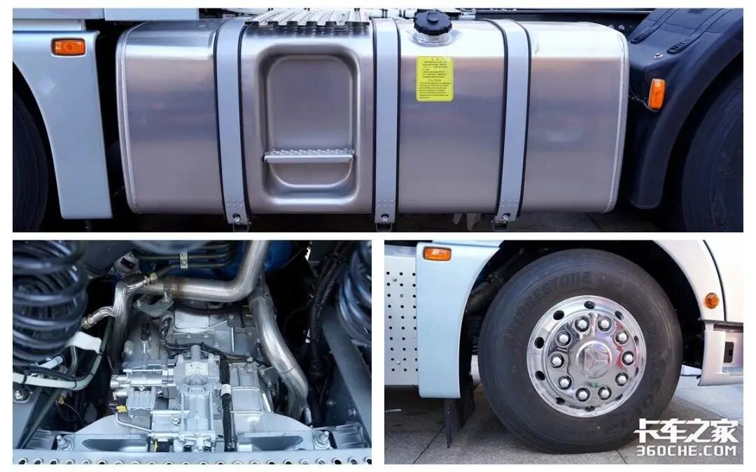 此外,两车轮圈均采用了铝合金材质来优化车辆自重,并均配备了铝合金油箱、铝合金储气筒、铝合金变速箱壳体、少片簧悬架等,结合车辆科学、体系化的降重措施,都为自身减少了可观的重量。