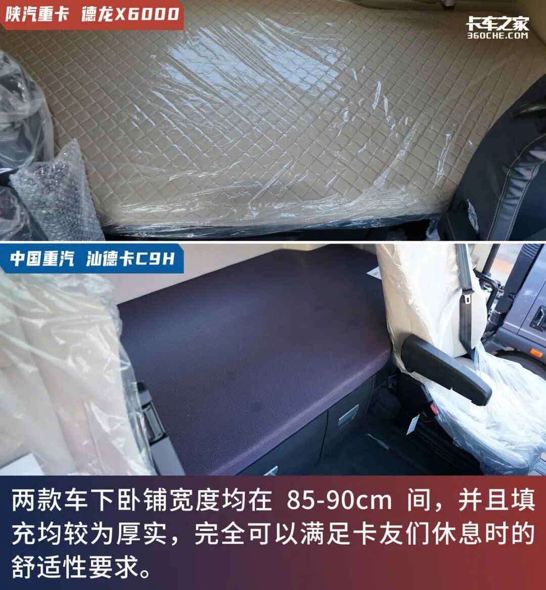 既然是因应山区及高原重载干线物流运输场景,卡友们所面临的不仅有较高的劳动强度还要应对复杂的天气变化,那么车辆的舒适性就至关重要了。这不仅要求了车辆要开着舒适,休息时也必须要满足卡友们的需求,那么两款车的舒适性表现如何呢?