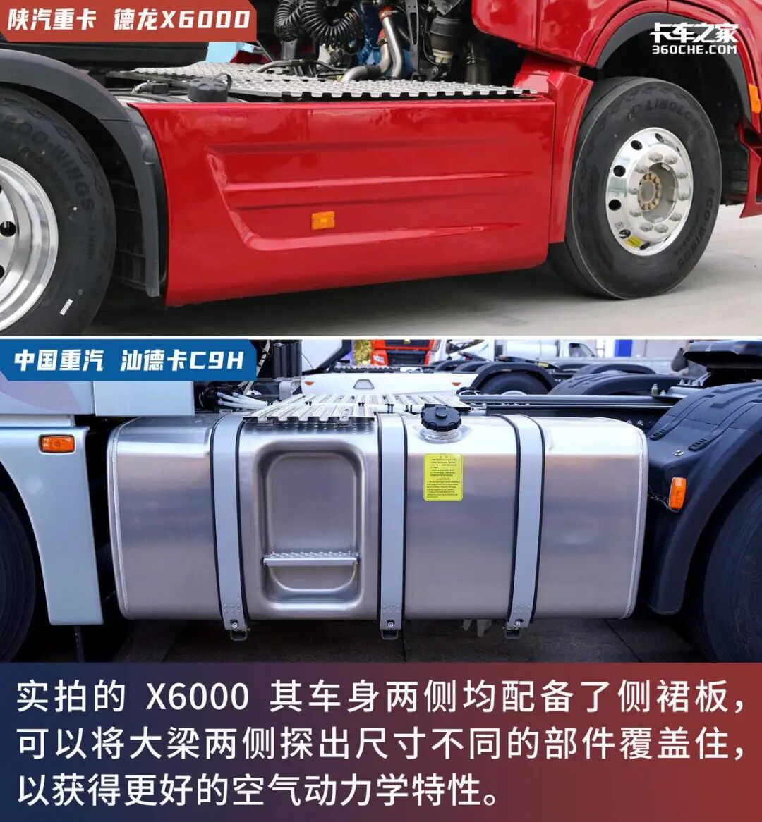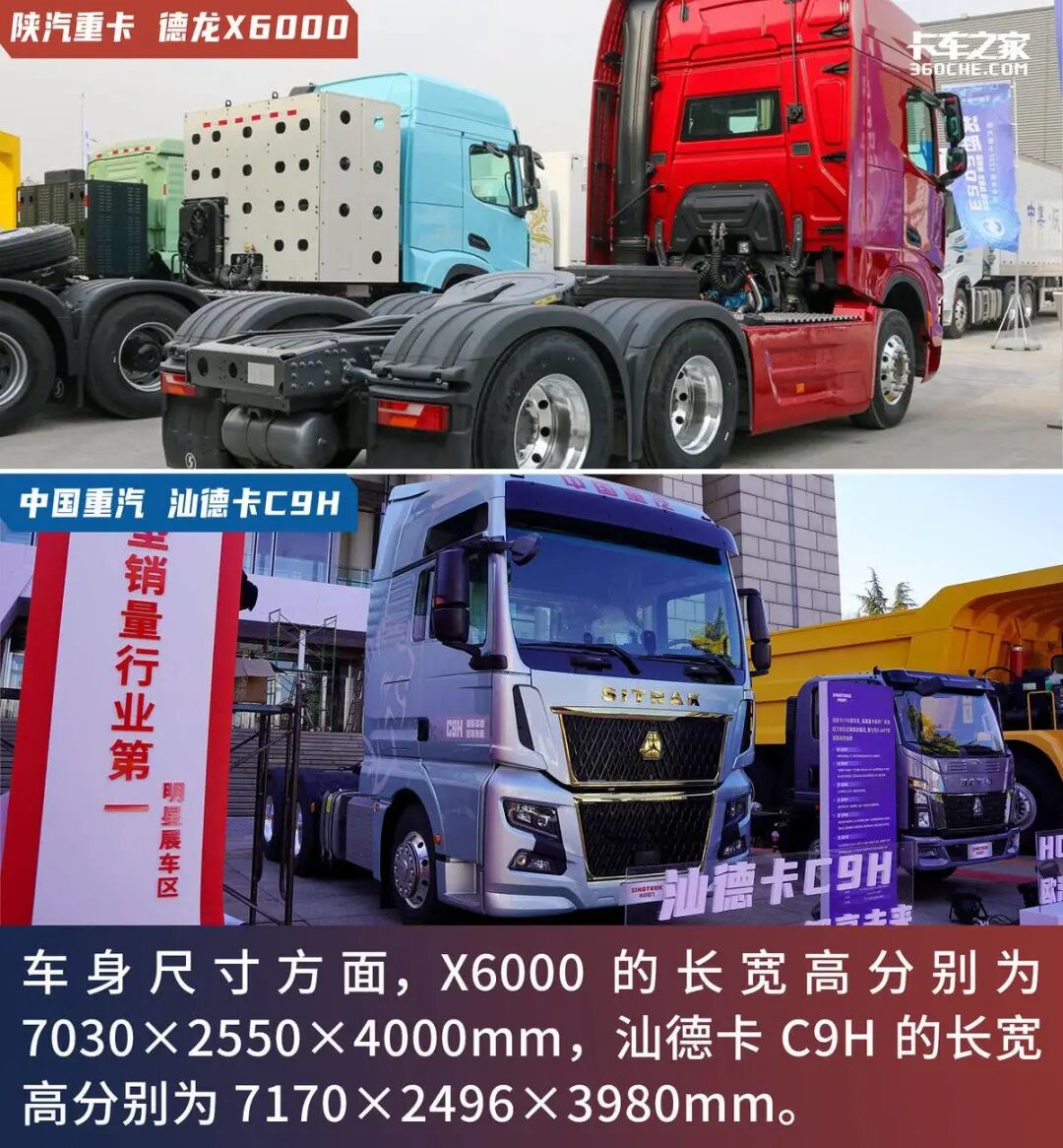 而前文提到的三位800马力选手,按推出的时间顺序来讲他们分别是:陕汽重卡X6000、中国重汽黄河X7和汕德卡C9H。那么本期,我们便找来他们之中定位相近的陕汽重卡X6000和汕德卡C9H来一场近身PK,我们看看它们之间到底有何异同。