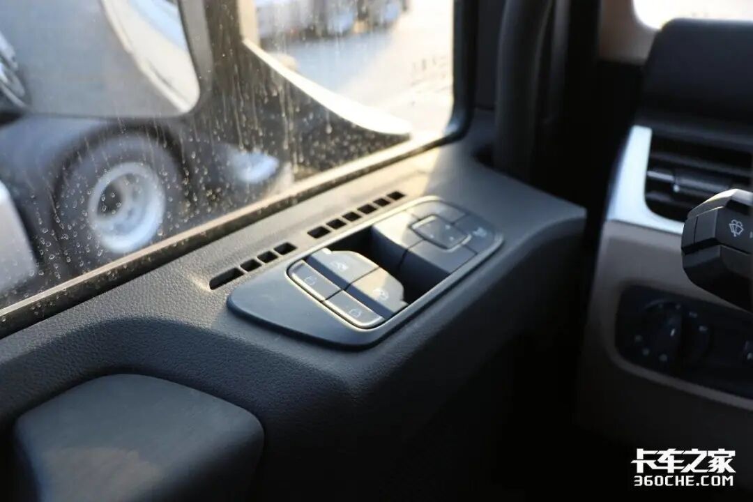 在驾驶员位置的车门板上,玻璃升降台集成了多功能按键区域,如中控锁、一键升降、后视镜电动调节及电加热等功能。行车时,驾驶员伸手就可操作,十分方便。值得一提的是德龙X6000还配置有自动灯光以及自动雨刷功能,行车便利性可以说非常高。