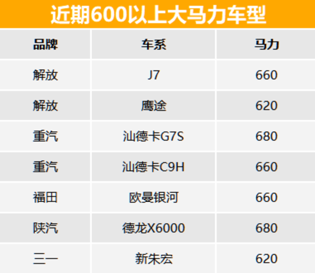 【卡车之家 原创】忽如一夜春风来,600马力段车型遍地开。
