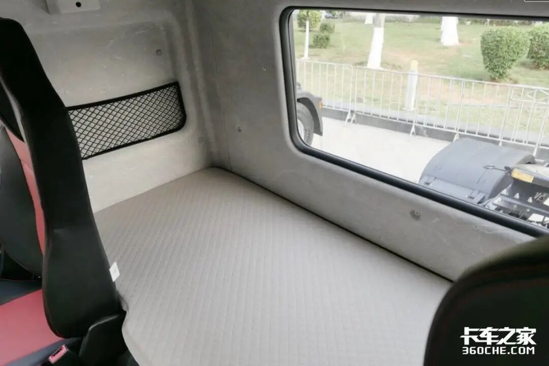 今天我们介绍的这款主打中短途运输市场的牵引车是解放青汽推出的悍V2.0,解放悍V2.0的驾驶室空间宽敞,考虑到港拖以及咱们的倒短运输场景,排队装卸货等情况比较常见,较为宽敞的空间可以在停车时给咱们充足的做饭以及休息和储物空间,车内储物空间也能满足驾驶员一礼拜左右的衣物换洗。