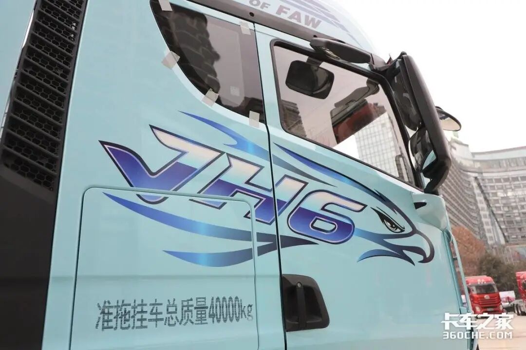 本次实拍的这台解放JH6采用了全新的涂装,马尔代夫蓝的配色年轻又靓丽,这款配色即使在乘用车也是不多见,搭配上侧面鹰头拉花显得清新脱俗,极具辨识度;而同期到来的还有珀金灰、明智青、香槟金等配色,外观上颇具质感。
