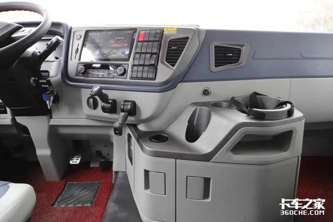 车辆的中控台采用了半围绕驾驶员的设计,中部的10寸大屏不仅能够满足卡友们的日常影音娱乐需求,还可对外接的四路影像进行可视化操作,非常全能。