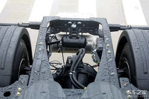 底盘左侧的铝合金油箱升级到了750L,油箱加大及低油耗的优势,满足跑干线时持续的续航要求,这无形中也提高了运输效率。