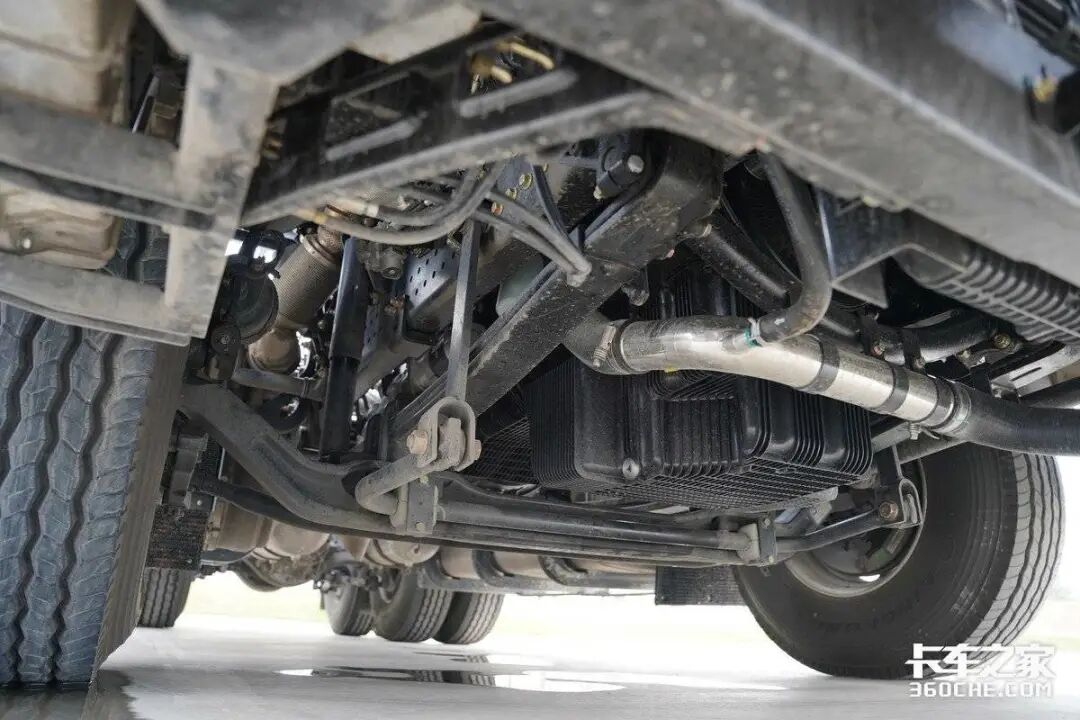 传动系统部分与之匹配的是伊顿康明斯12档AMT变速箱,12档超速档设计,并根据国内道路进行了深度集成标定,能在不同路况下自动切换最佳档位,最高能达到99.8%的传动效率,让新手也能跟老司机一样做到节油驾驶。