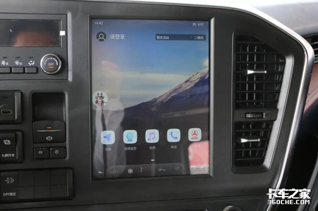 三一新朱宏旗舰版的中控台为半包围驾驶员设计,人机交互更加方便,中控台面板采用了钢琴烤漆面板和金属包边设计,极具质感。中控部分的集成的12.1寸液晶大屏配置丰富,导航、收音机、蓝牙电话等功能一应俱全,不仅能够满足卡友日常影音娱乐需求,还可对360环视进行可视化操作。
