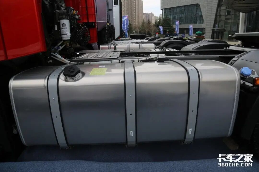 实拍的这台欧曼GTL采用了760L+300L合计1060L的双油箱,如若按照每百公里30-33升的油耗计算,这个容量的油箱大约可为车辆带来3000公里以上的续航能力,足够从北京跑到广州中途不需加油。