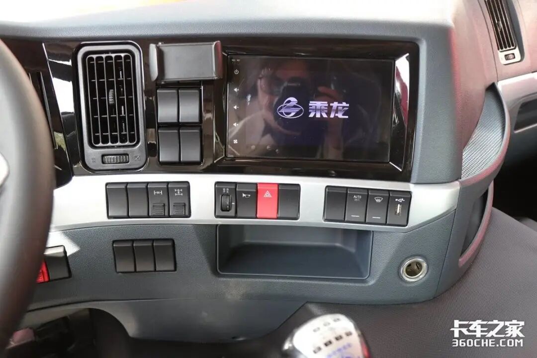 开车上路经常需要接打电话,但是如果接打手机可能会被扣分罚款。这款乘龙H5超轻版LNG牵引车采用了多功能方向盘,集成设计了多媒体控制、蓝牙电话、定速巡航等多种功能,手不离方向盘就可以操作,更安全也更便捷。