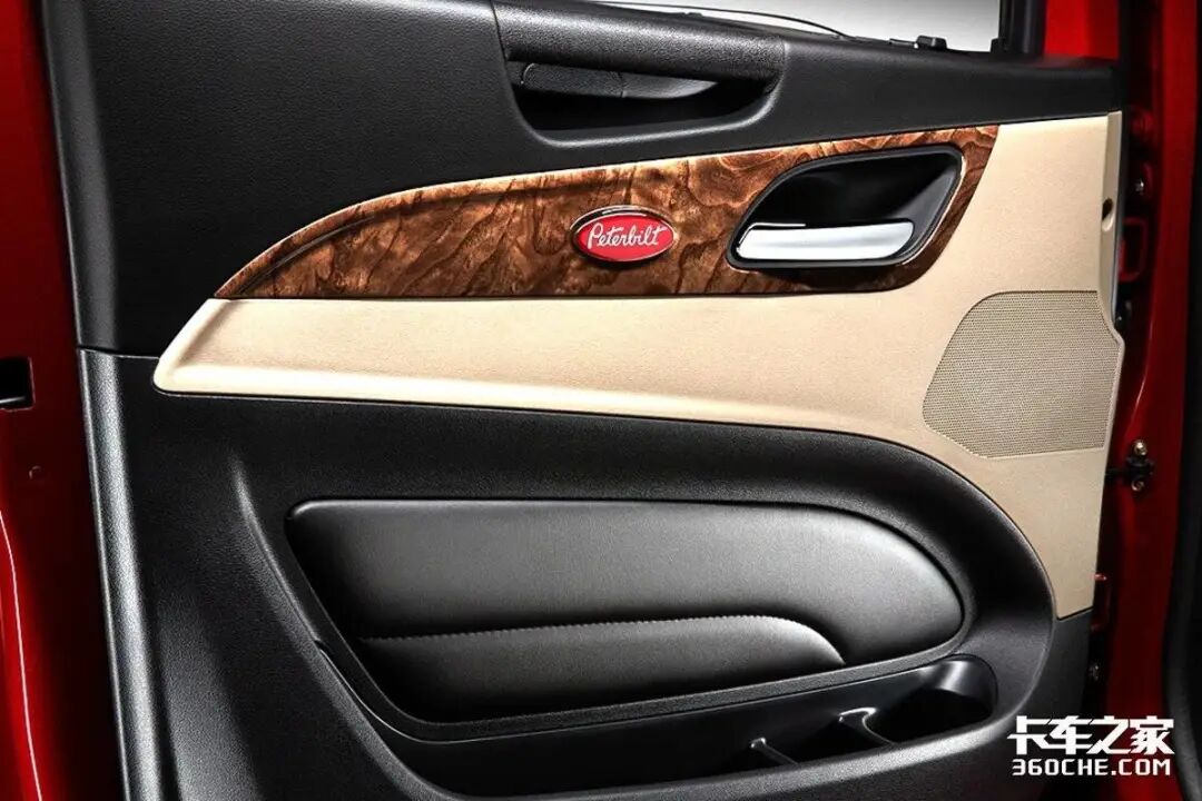 此外,彼得比尔特589还提供了传奇版选装包,可带来更独特、更个性的视觉效果。在复古的彼得比尔特引擎盖上加上长矛徽标,极富光泽的挡泥板、有如矩形进气格栅造型的精致小桌板、精细的皮革座椅、以及各处都能看到的徽章等等,豪华感营造到位。