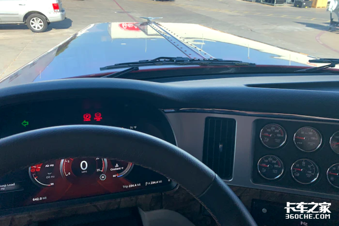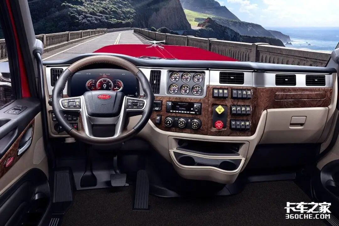 彼得比尔特589提供了更富有品质感的内饰及驾驶舒适性。389上的木纹装饰统统得以保留,此外银色的饰板与重新设计的中控台布局让驾驶室看起来更为明亮。该车还标配了15英寸的仪表盘,从这个角度看过去,真的能感受到浓浓古典与现代之间的碰撞。