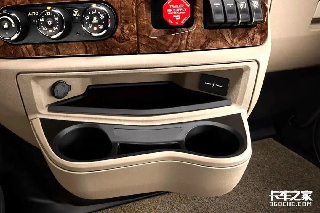 驾驶室宽度由彼得比尔特389的1.9米拓宽至了2.1米,加宽了整整20cm,为驾驶室营造出了更为宽敞的生活空间。而这20cm还带来了不少附加优势,有了更大的膝部活动空间。变速箱档杆不再位于驾驶室中间,取而代之的是丰富的储物空间及杯架等,在进出驾驶位时有了更好的体验。