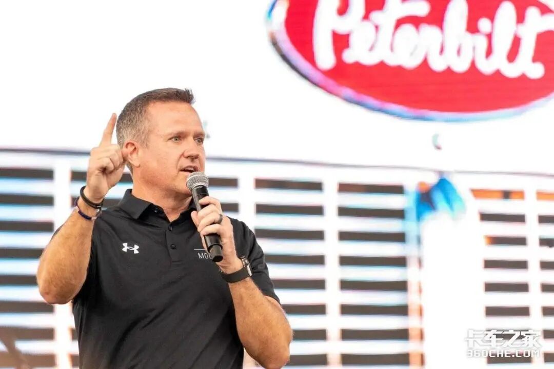 Peterbilt总经理JasonSkoog在沃斯堡的德克萨斯赛车场展示全新的彼得比尔特589