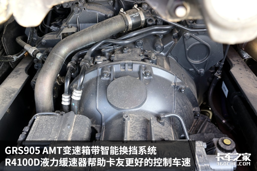 为了给卡友们一个更安全的驾驶环境,帮助卡友们更好的去控制车速,车辆配有斯堪尼亚自主研发的R4100D液力缓速器,而且还能减少刹车片的磨损。实拍车辆的后桥速比是2.71,轮胎规格是295/80R22.5。