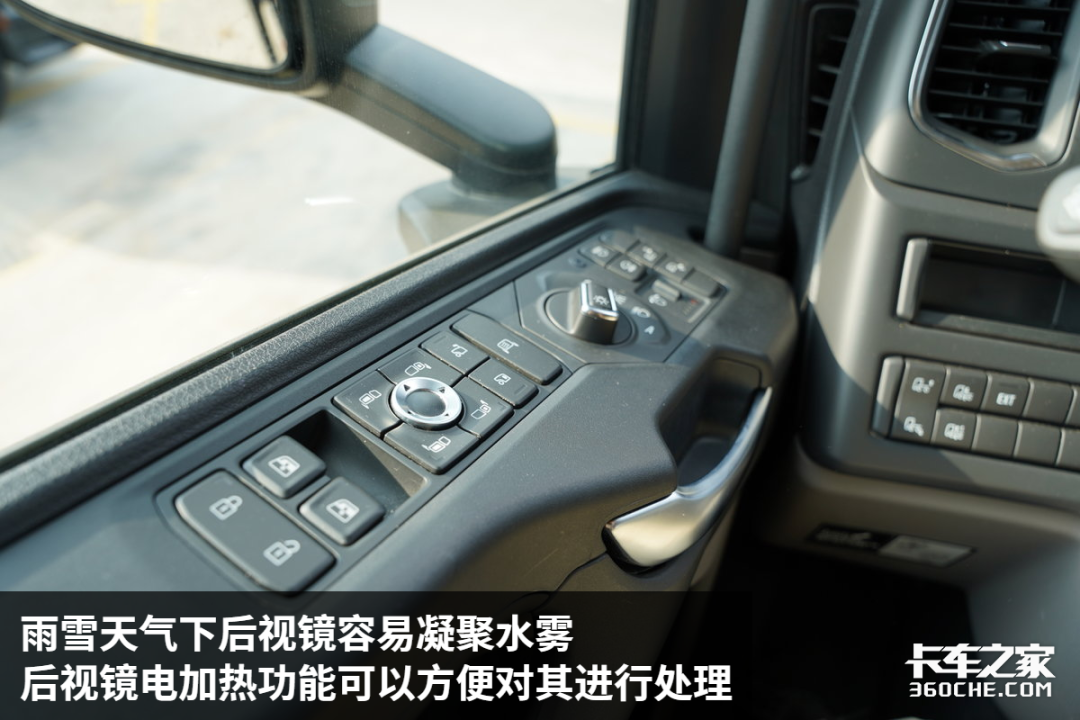 雨雪天气下,后视镜上面也非常容易凝聚水雾,会对卡友们的行车视线造成一定的影响,什么样的方法能帮助卡友们快速处理掉上面的水雾呢?在斯堪尼亚车窗控制面板上,带有后视镜电加热开关,打开此功能后,卡友们就不需要手动的对后视镜上面的水雾进行擦除,比较方便。
