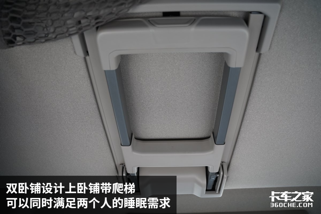 为了追赶运输的时效,一般情况下,同一辆车会配备两名驾驶员,从而达到人停车不停的状态,但是因为上下卧铺不方便,所以基本上卡友们都只在下卧铺上轮换着休息,没有属于自己的隐私。斯堪尼亚在上卧铺的支架下面,布置有折叠式的爬梯,非常方便卡友们在上卧铺上休息,可以同时满足父子、兄弟两个人对睡眠的需求,而且每个人也有着自己的隐私空间。