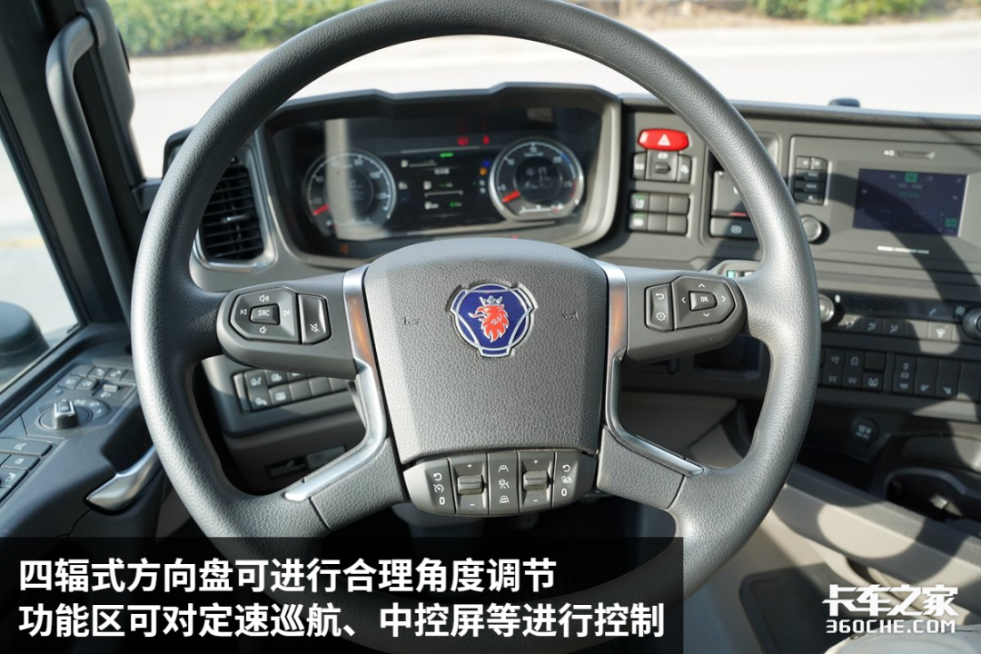 跑长途运输,卡友们的精神压力可能会比较大,所以需要车辆带有各种安全配置措施来进行护航。斯堪尼亚标配有ESP车身电子稳定系统、EBS电子控制系统、自动坡道保持+坡道启动辅助功能、AEB辅助紧急制动系统、LDW车道偏离预警系统ACC自适应巡航控制系统等。