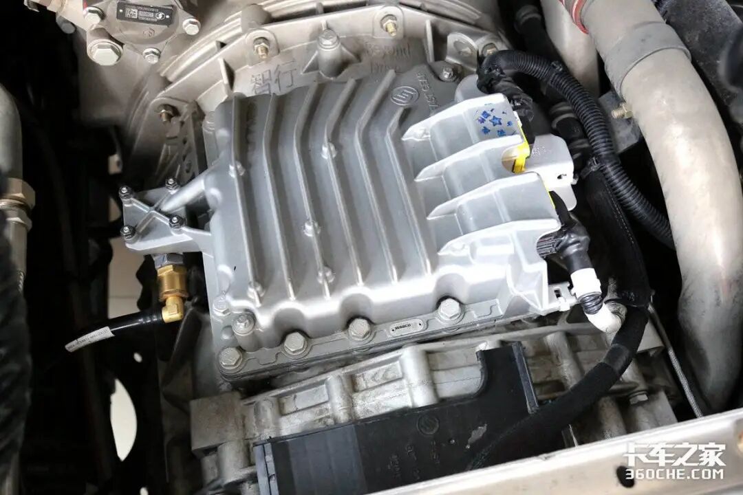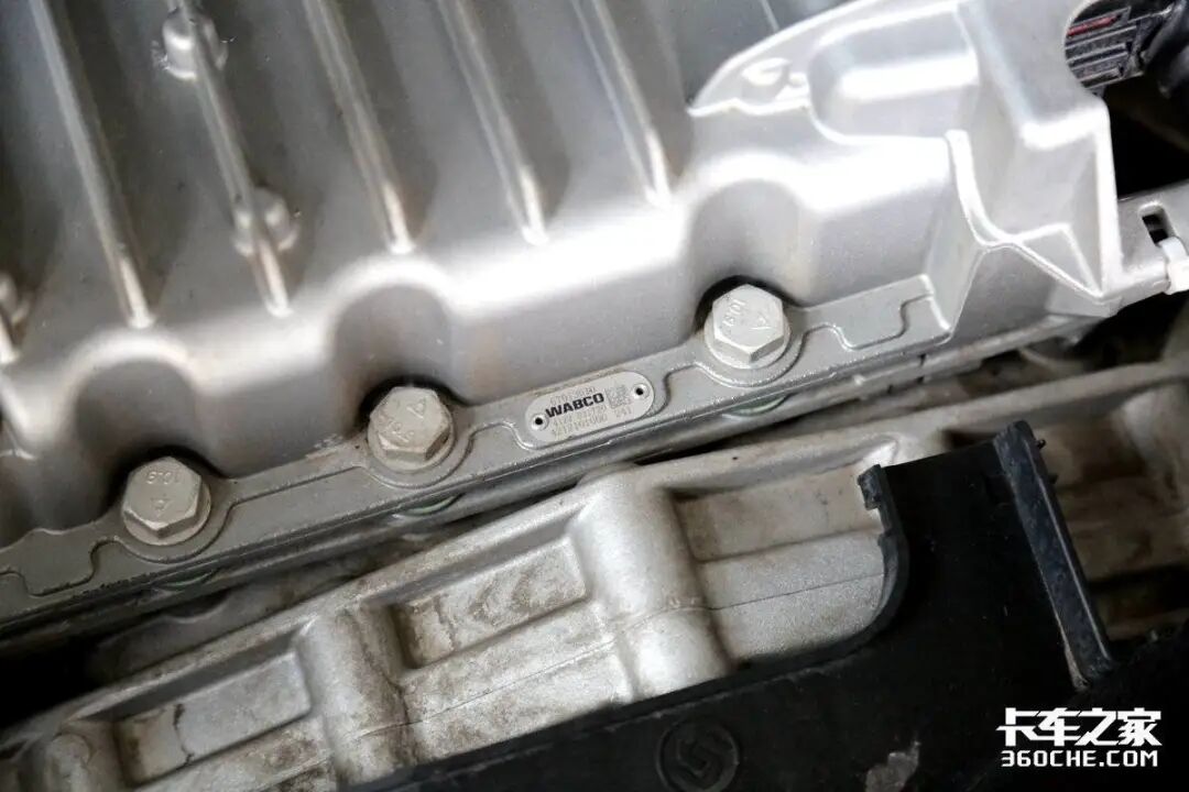 在变速箱方面,实拍车型采用了法士特16档易行2.0AMT系列变速箱,这款变速箱拥有16个档位,更多的档位能够更好的分配各种速度工况下车辆的动力,同时变速箱上方为威伯科的换挡控制机构,采用集成式设计,兼具长期使用工况下的可靠性。