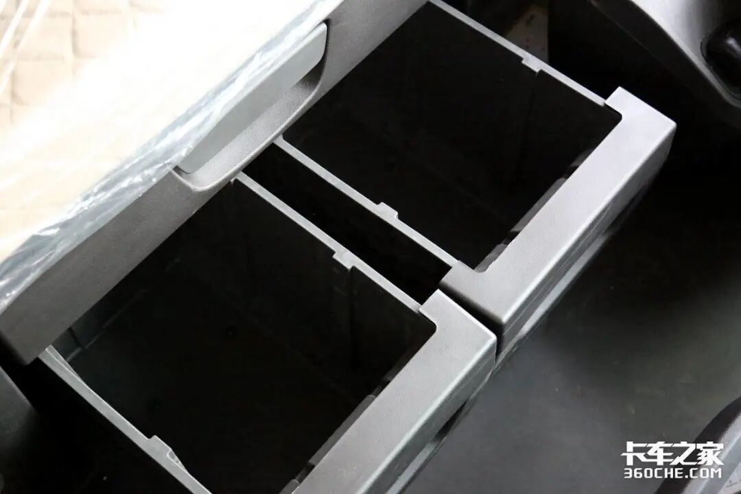 值得一提的是,陕汽X6000内饰设计中隐藏有不少小心思,比如两侧车门上方的储物格不仅可以用于放置物品,外侧区域还设计有墨镜盒,相较于放置在前挡风玻璃附近而言,设计在此处卡友在驾车时拿取更加方便。