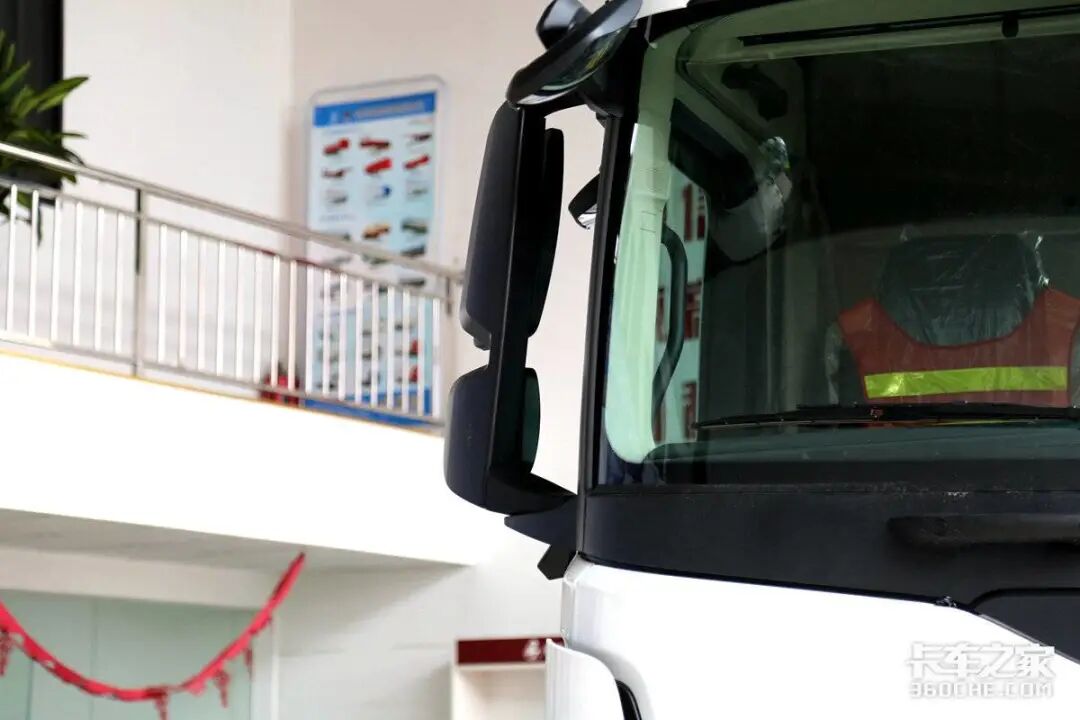 其次在高配车型中还装有4方位环绕影像以及后视镜倒车下翻功能,后者在目前卡车行业中并不常见,能够在倒车和入库时帮助驾驶员看清停车位标线,能够在拥挤的物流园有效减少后方视野盲区面积,提升行车安全性。
