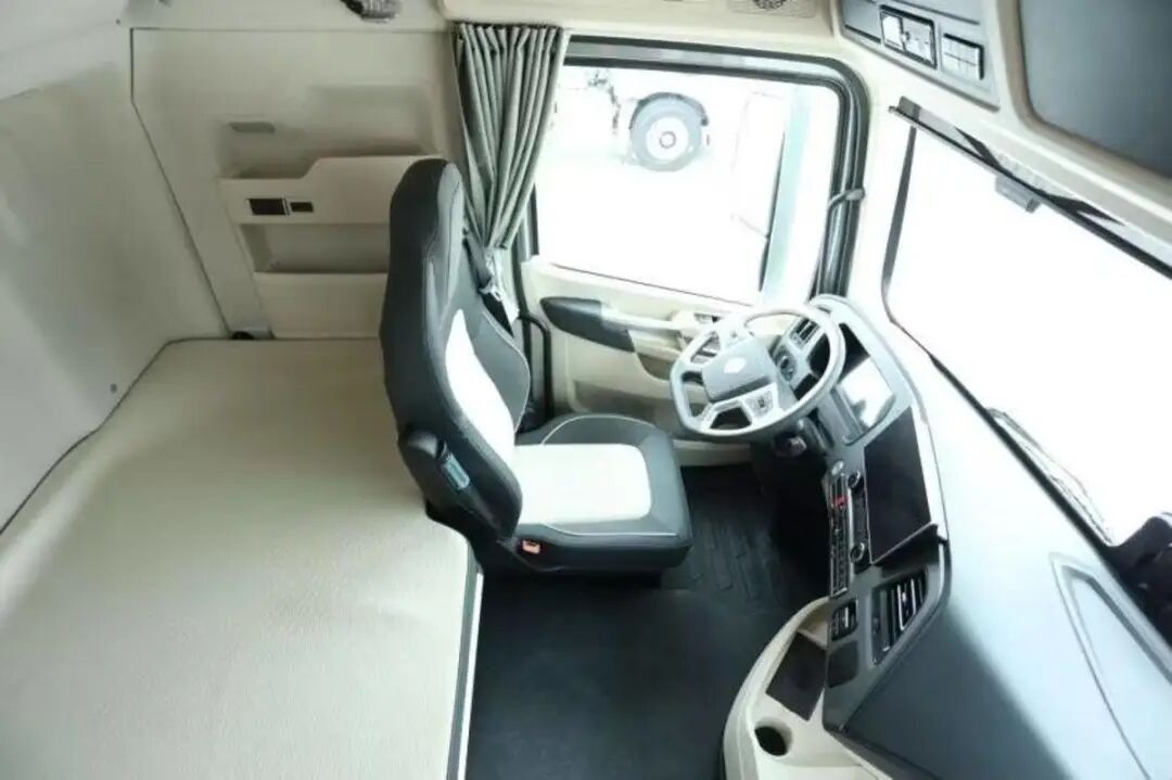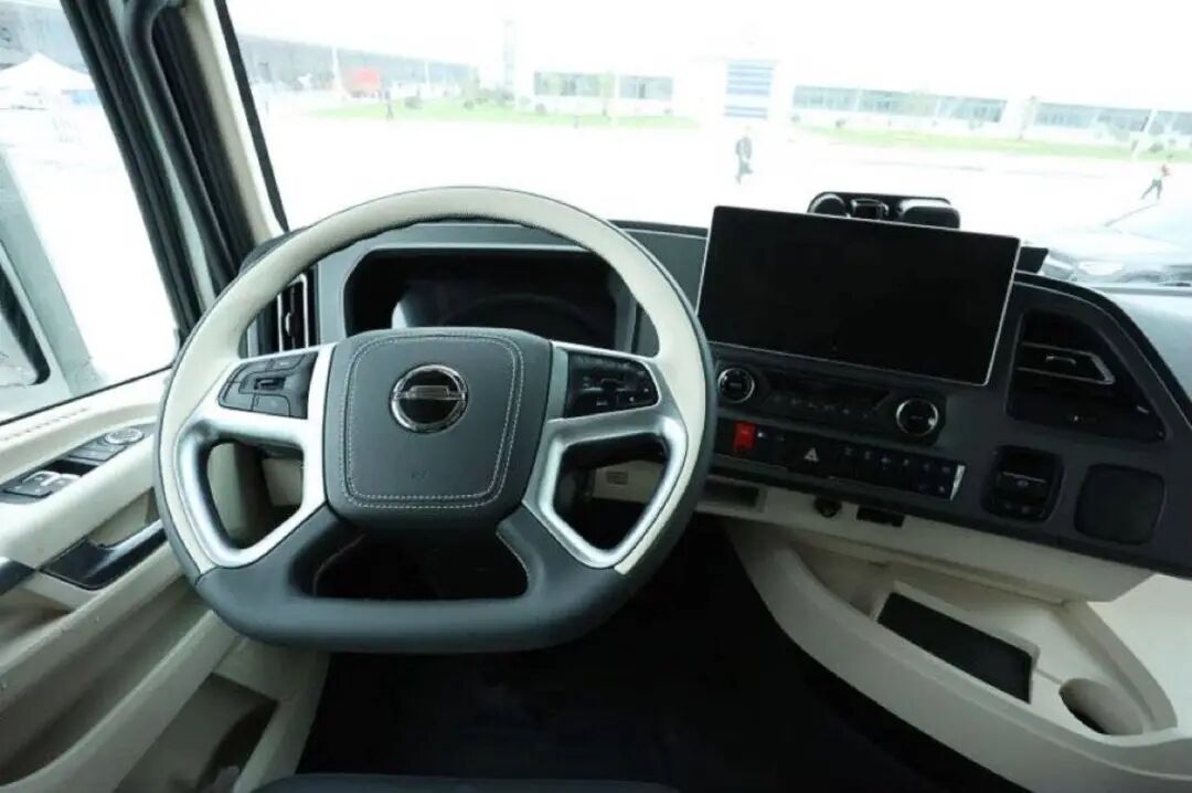 并且在配置方面,复兴车型也达到了目前行业前列的国产高端重卡水准,超宽平地板驾驶室,较行业其他产品大1m³,自动空调、自动雨刷、自动大灯、驻车空调、驻车暖风、角度分段可调的1米等宽卧铺。