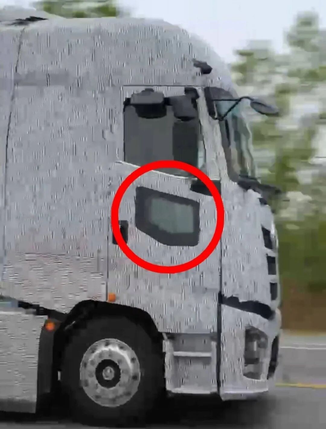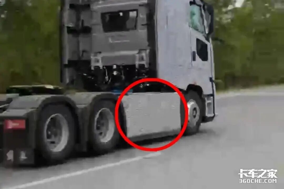 视频中,这款全新牵引车全车正由伪装覆盖着,行人正巧抓拍到了其从身边风驰电掣而过的过程。虽然只有短短几秒钟,但是我们还是能够从中窥见一些端倪!