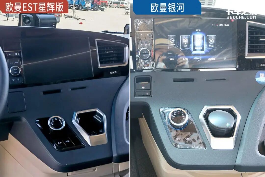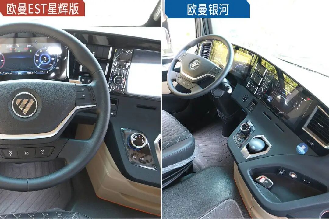 最后则是在内饰匹配上,欧曼EST星辉版与欧曼银河采用了同款的内饰设计,以及平地板驾驶室,在内饰功能便捷性和空间表现方面,两车相差不大。