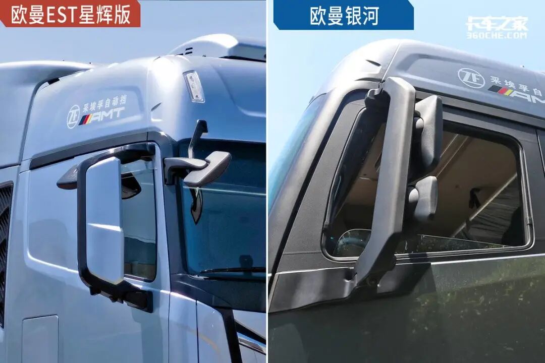 欧曼EST星辉版采用了与外观更搭配的银面一体式后视镜,欧曼银河则采用了分体式设计,无疑是前者更为亮眼。且猜测两车后视镜功能匹配是一样的。