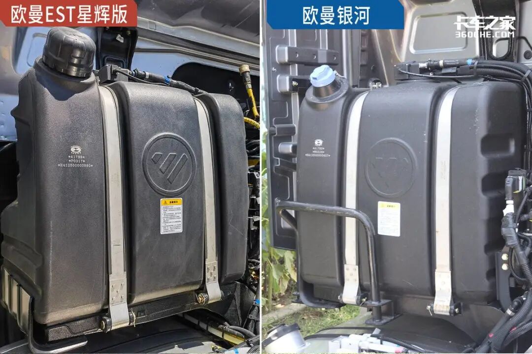 同时两车在适配近1000升双铝合金油箱后,为最大化利用底盘空间,故而牺牲了部分便利性,特将尿素罐采用了上置设计,内部容积均为65升。