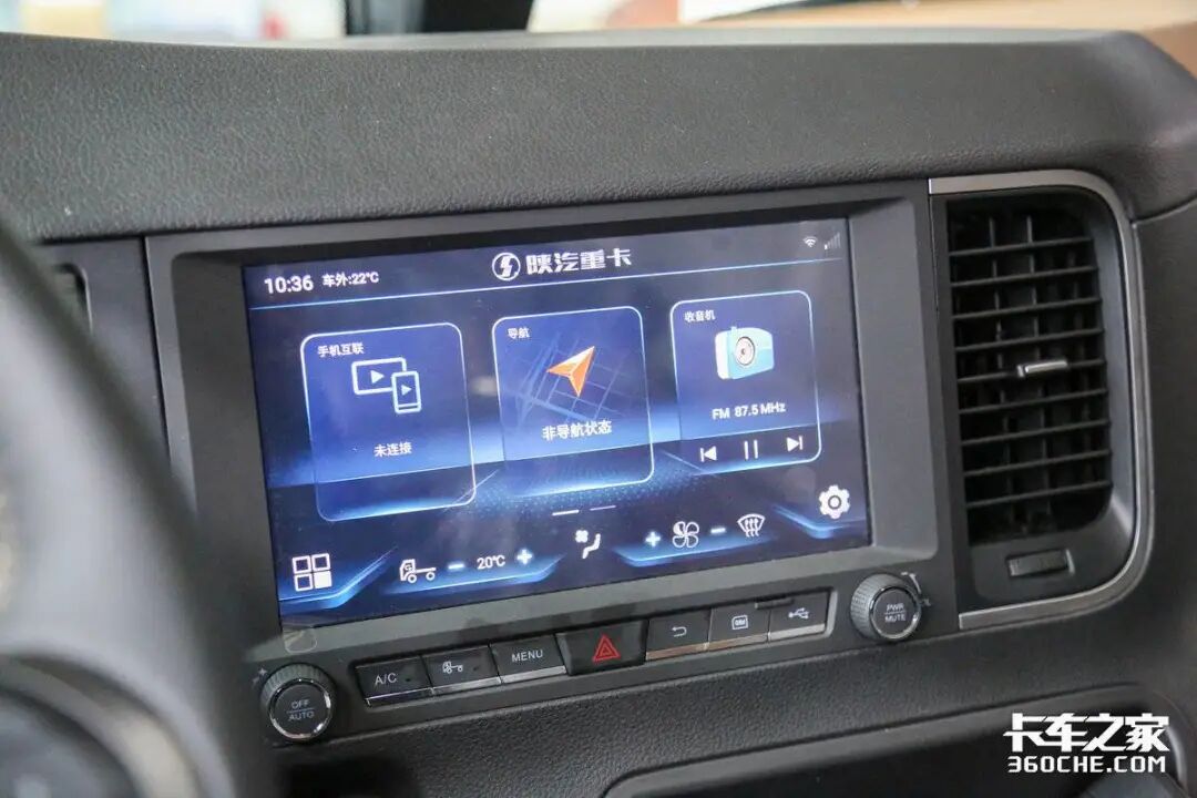 除此之外,在各种配置上,这台陕汽X6000也可以说拉满了,在辅助驾驶方面配备有ACC自适应定速巡航、LDWS车道偏离预警以及FCW前碰撞预警,而且在舒适性方面,配备多功能方向盘、带通风加热功能的气囊减震座椅、驻车空调、全景影像、带随动调节的后视镜等等,功能全面又强悍。