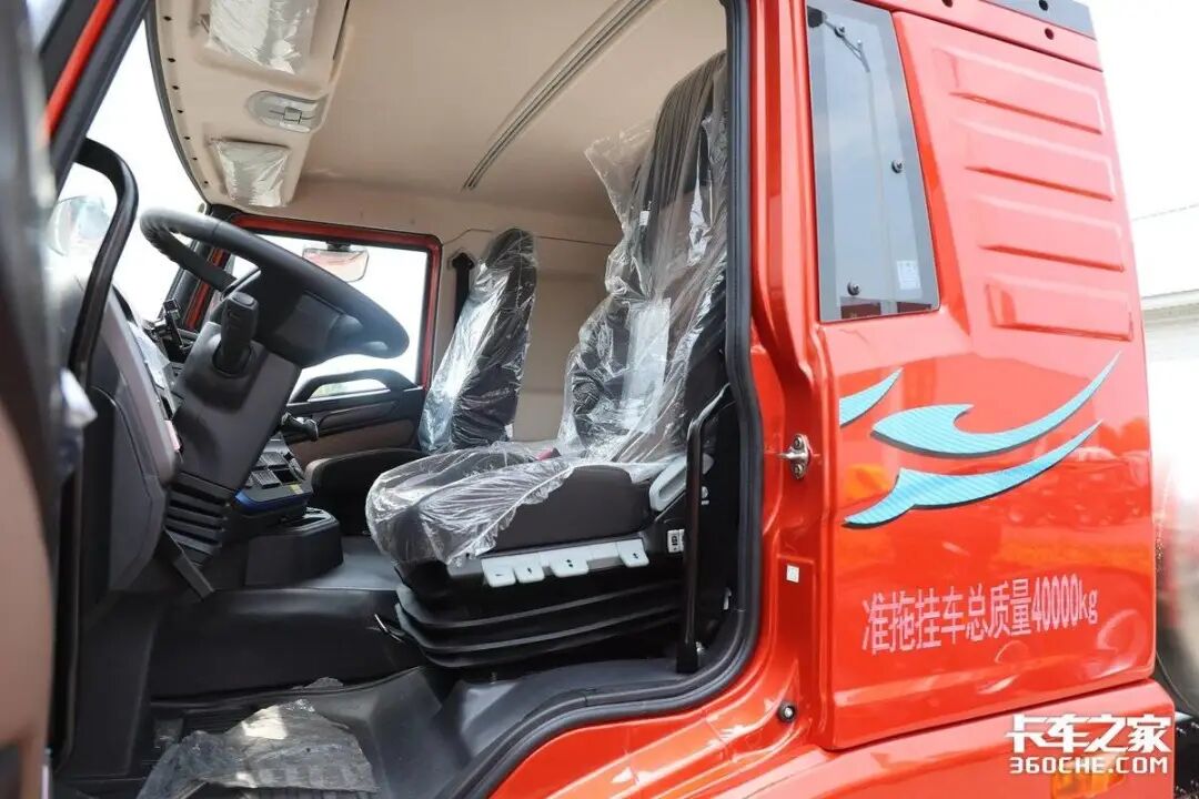 煤炭运输追求极致的运营成本,因此在驾驶室配置方面也做了取舍,在降低运营成本的同时提升了驾驶的舒适性,首先主驾驶座椅采用的是格拉默多项调节气囊减震座椅,多功能方向盘、蓝牙电话、手机支架等都是标配。