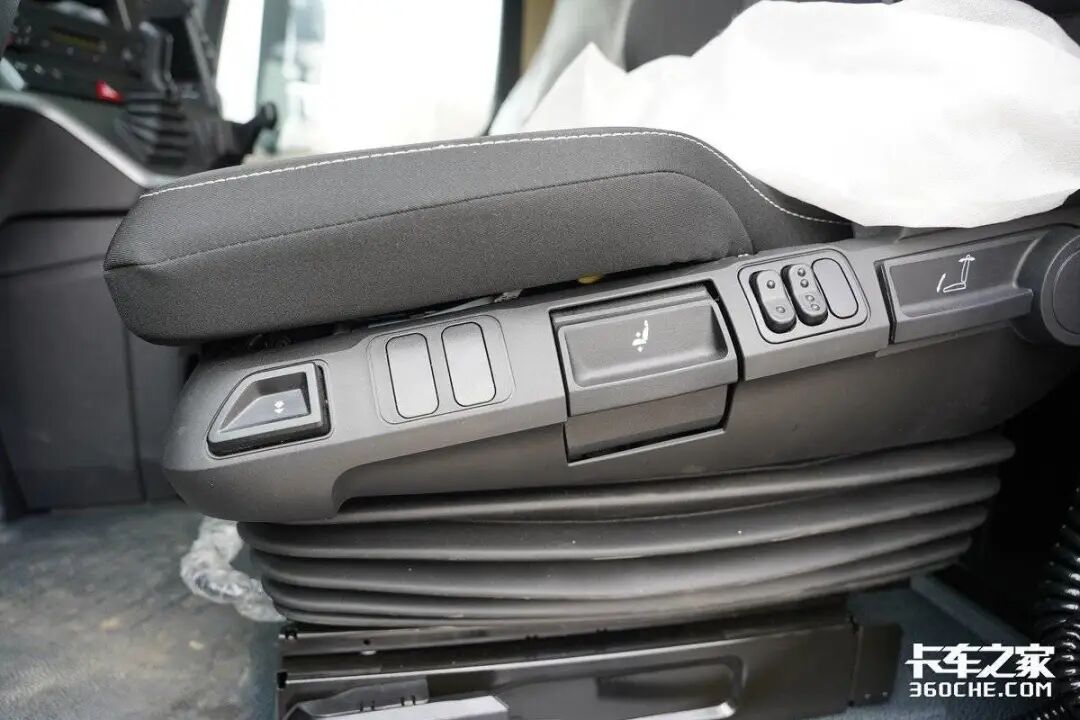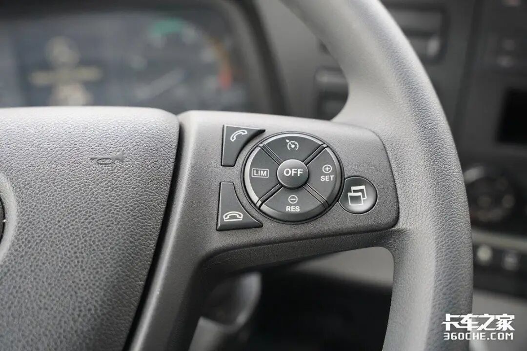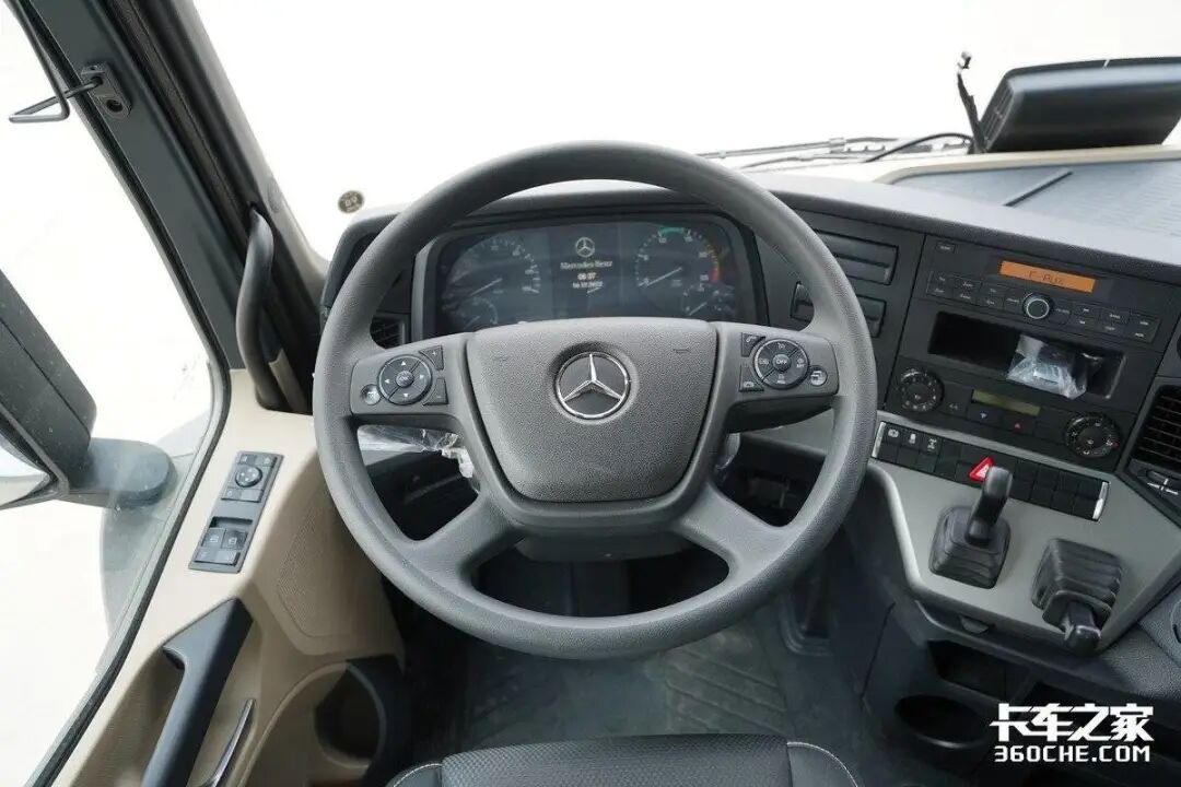 为了方便用户搭挂甩挂运输,Actros C的后桥采用全气囊的悬挂形式,气囊高度可通过座椅旁的遥控器以及方向盘上的多功能按键进行调节。除此之外,方向盘还可对定速巡航、变速箱档位、仪表盘菜单等功能进行调节,非常方便,日常大部分需要用到的功能,双手腾挪间就能完成操作。