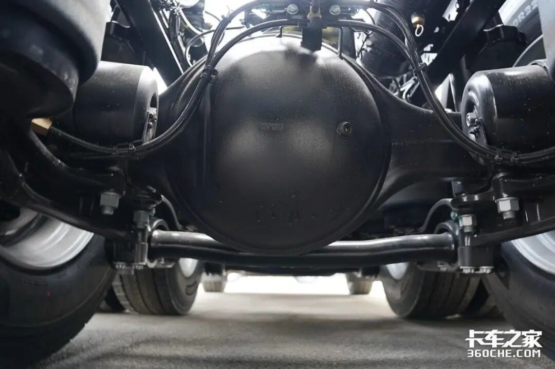 后桥部分,这台Actros C选择的是速比为2.643的美驰后桥,整车匹配有规格为315/70R22.5 20PR的佳通轮胎,这款轮胎也是奔驰和佳通共同研发的一款轮胎,具备滚阻更低驾驶更平稳的特点。通过卡车之家车速计算器咱们能够得知,当这款车的发动机处于经济转速区间时,车辆时速能够达到74-104km/h。