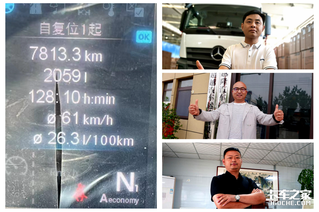王飞说,“之前用的500马力国产车,百公里油耗在34-35升,用了奔驰后,油耗一下子降到平均28升左右,最低时能达到26.3升,我都惊呆了。现在跑一趟新乡-广州往返,900升油就足够,比之前省200升,一个月能省2000升~2300升,每个月仅油费就能省1万多元,综合算下来,每台奔驰每个月多创造超过2万元的利润。”