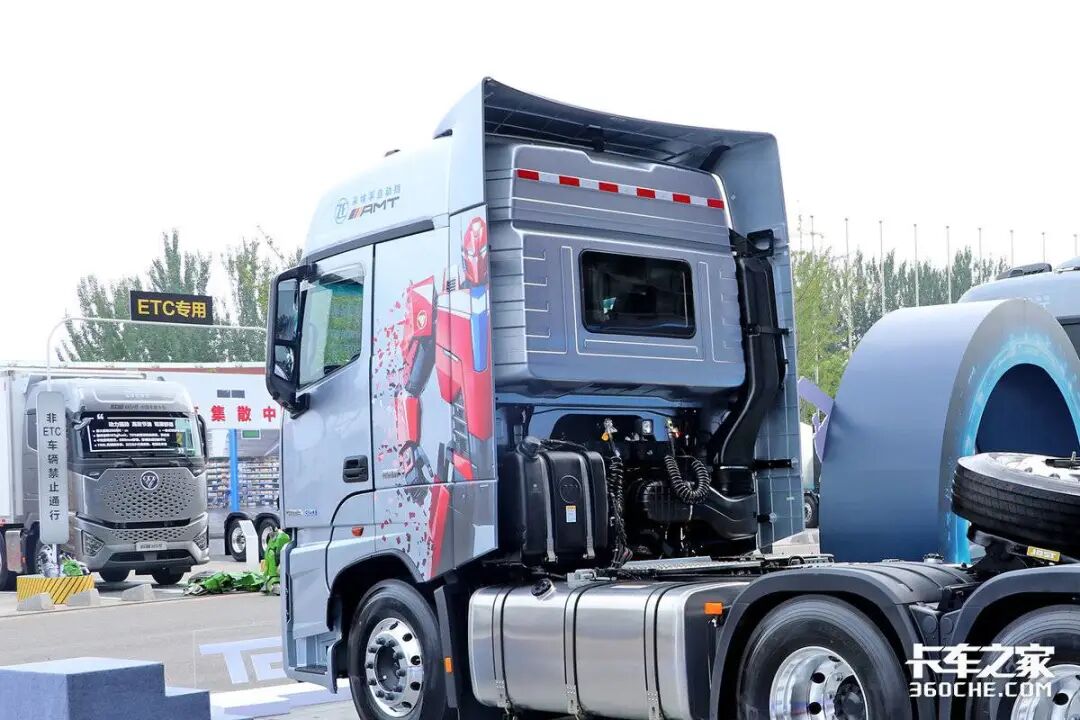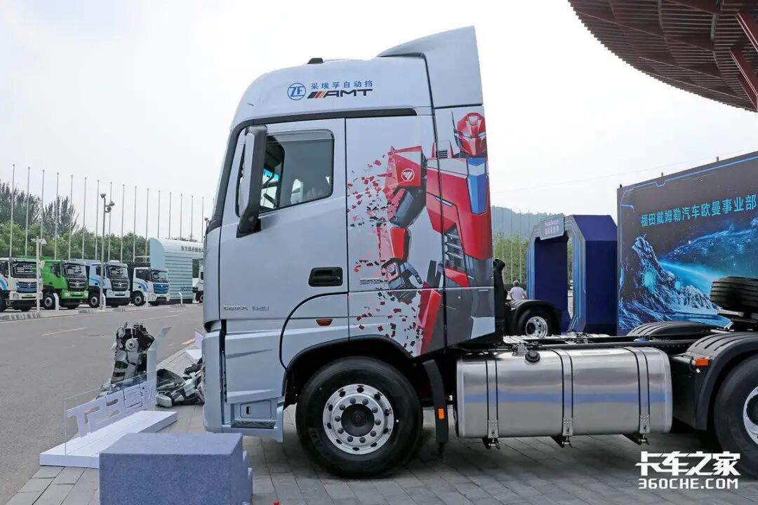 来到侧面,在导流罩的配合下,整车侧面观感是较为魁梧的,顶部也带有“ZF AMT”的品牌标识,中部有着动力、版本标识,后部也有着大面积的“变形金刚”彩色涂装,而这也是星辉版车型的专属匹配。