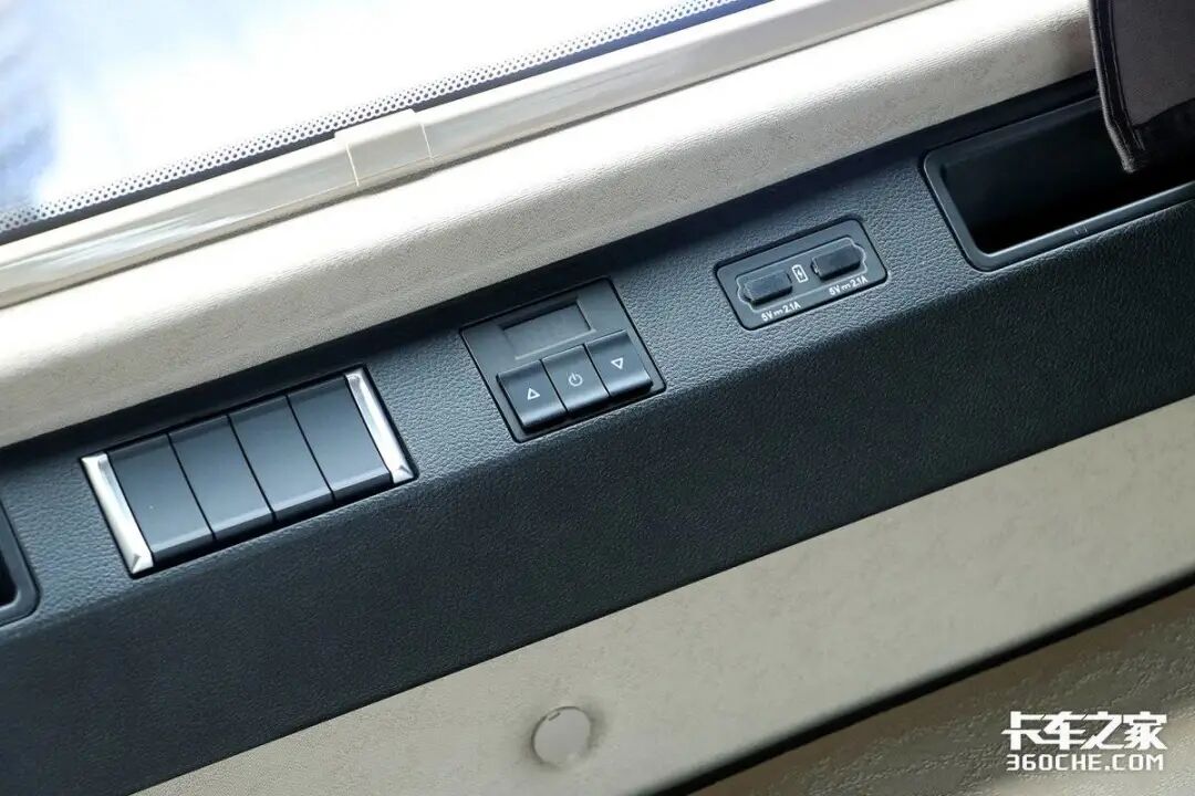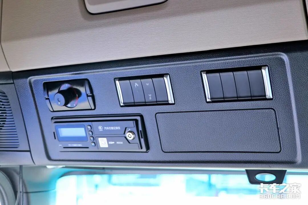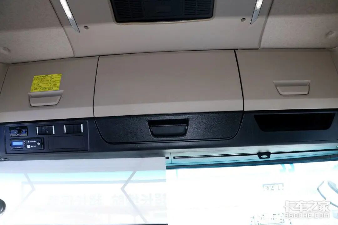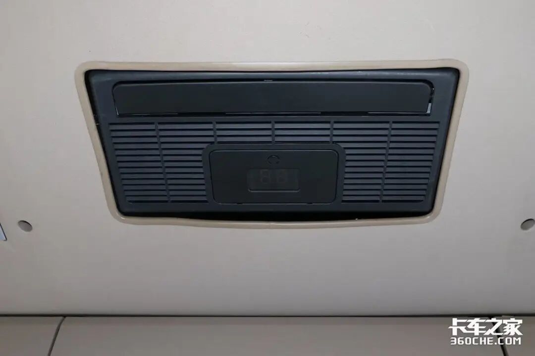 而且实拍车为了更好的提升卡友的行车舒适性,该车原厂可适配有顶置驻车空调和驻车暖风功能,无论是在国内严冷地区,还是炎热地带,在停车休息时,车内都能拥有舒适的休息环境。