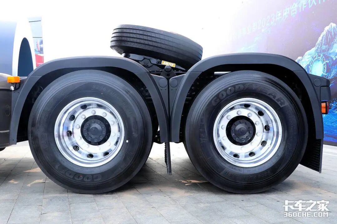 另外,欧曼EST星辉版实拍车全车适配有铝合金轮圈,以及固特异品牌的12R22.5型号低滚阻轮胎,滚动阻力可下降20%,前后两片板簧悬架。从以上几点中,也不难看出整车高端中长途、干线物流运输的车型定位。