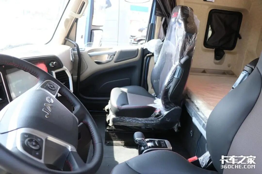 长途干线运输对于货品时效性要求较高,驾驶员往往会采用双司机人停车不停的运营模式,工作强度大,对车辆的舒适性需求就高。江淮跨越V5配备有打孔皮质包裹气囊座椅,左右两侧都设计有高度可调的扶手,搭配上与座椅随动的设计的变速箱操作台,能够极大程度的降低驾驶员右侧身体的负荷。