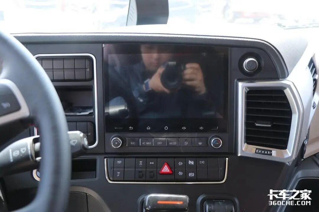 动力方面,实拍的江淮跨越V5搭载的是康明斯Z14NS6B560发动机,排量13.48升,最大可输出560马力,可在1100转/分钟时输出2650N·m的峰值扭矩,满足国六b排放标准。值得一提的是,这台跨越V5还可选择660马力康明斯M15发动机,当发动机转速达到900-1100转/分钟这个区间时,能爆发出3200牛米的峰值扭矩。